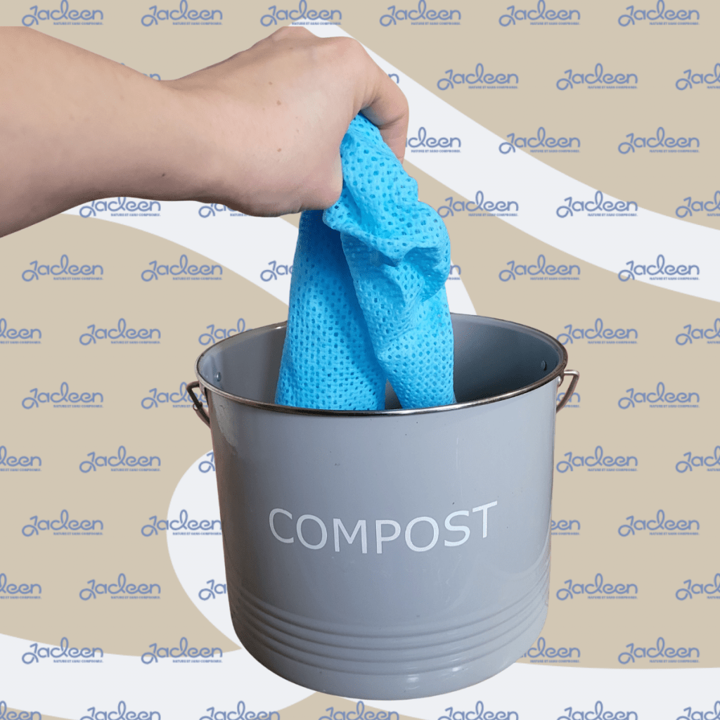 À l’inverse, la lavette Jacleen est 100 % végétale et pensée pour les usages professionnels quotidiens.   Elle offre une excellente prise en main, une forte capacité d’absorption (jusqu’à 9 fois son poids), un faible peluchage et une structure alvéolée limitant la prolifération bactérienne. Lavable en machine jusqu’à 30 cycles à 60 °C, elle divise significativement son impact par usage.  L’avantage environnemental se prolonge jusqu’à la fin de vie. Certifiée OK Home Compost, la lavette Jacleen se décompose en 120 jours dans un compost domestique.   Sa fabrication nécessite peu d’énergie, avec une eau majoritairement recyclée, et sa valorisation finale par compostage ou méthanisation génère très peu d’émissions.  Fabriquée en France, traçable et certifiée, Jacleen s’impose comme la première lavette professionnelle réutilisable, compostable et performante.   Elle permet de concilier hygiène professionnelle, maîtrise des budgets et réduction tangible de l’impact environnemental.