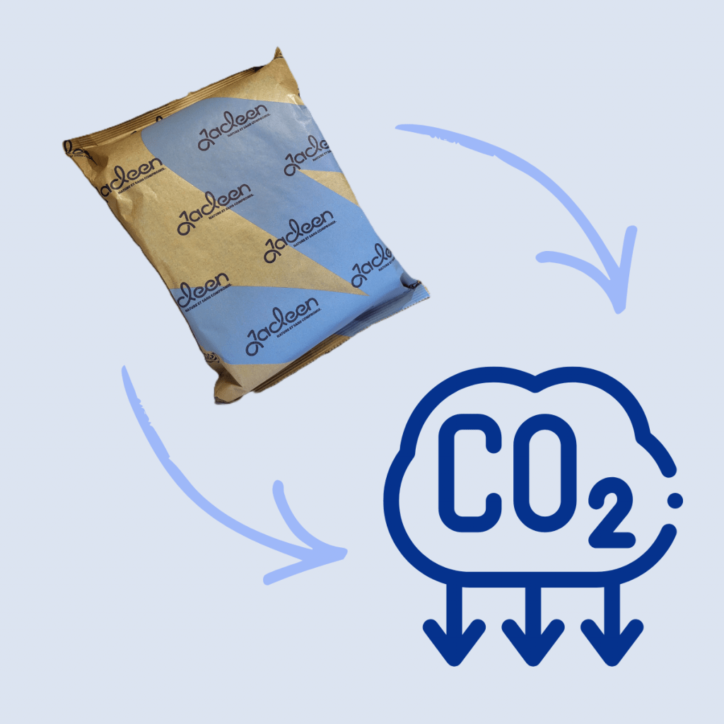 L’emballage joue également un rôle clé. Jacleen utilise du papier kraft, matériau renouvelable, biodégradable et recyclable, dont l’empreinte carbone est bien plus faible que celle des emballages plastiques sur l’ensemble de leur cycle de vie ( -> découvrir le cycle de vie de Jacleen : https://jacleen.fr/production/economie-circulaire-fin-de-vie-comment-et-pourquoi/ )